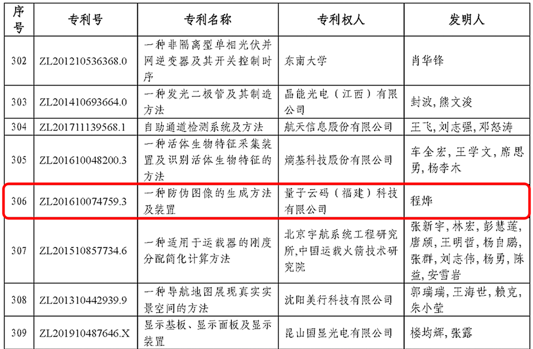 近日,国家知识产权局公示了“第二十三届中国专利奖“获奖项目名单,量子云码技术发明专利从众多参选的专利中脱颖而出,被评为中国专利优秀奖!