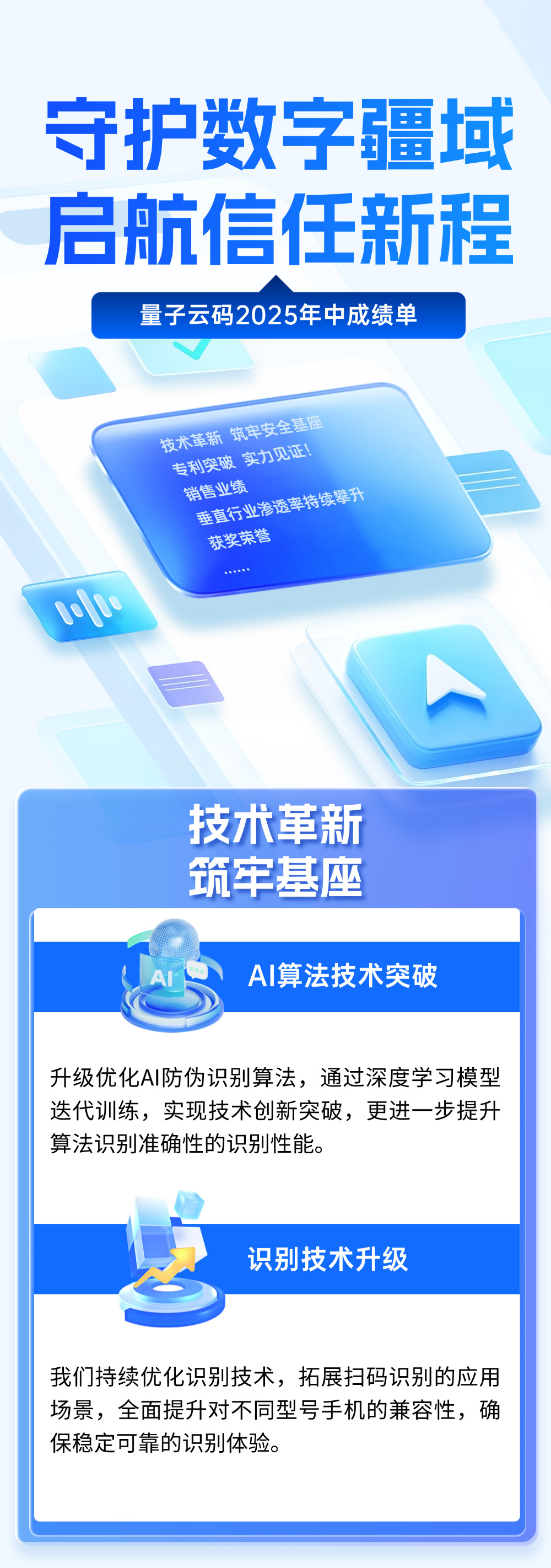 2025年征程过半,量子云码以“为万物赋予可信身份”为持续动力,在一物一码的赛道上加速奔跑。在各级领导的殷切关怀与合作伙伴的鼎力支持下,公司以创新驱动发展,以实力赢得市场,交出了一份亮眼的中期答卷!